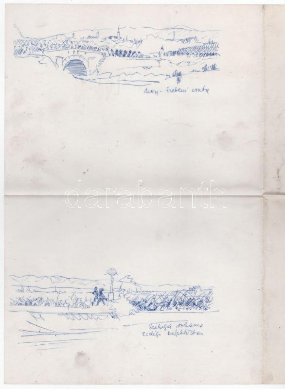 Jelzés nélkül, részben Révész Imre és Barabás Miklós után (több rajz egy lapon): Petőfi a nép között; Bem; Érted haltuk szent világszabadság; Nagyszebeni csata; Székelyek rohama erdélyi Kárpátokban. Golyóstoll, hártyapapír, hajtva, lapméret: 44,5×32,5 cm