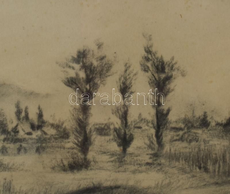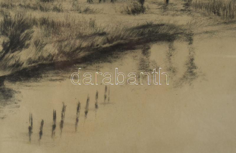 Mattis jelzéssel (ifj. Mattis-Teutsch János?): Vízparti táj. Szén, papír. Dekoratív, üvegezett fakeretben, 37,5x54,5 cm