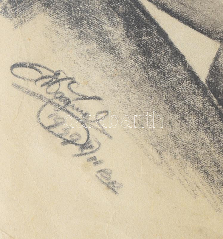 Olvashatatlan jelzéssel: Elegáns úr portréja, 1939. Ceruza, papír. Kissé foltos. Gyűrődésekkel, lapszéli apró szakadásokkal. 25×17 cm.
