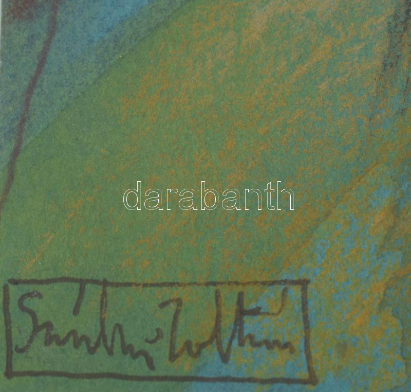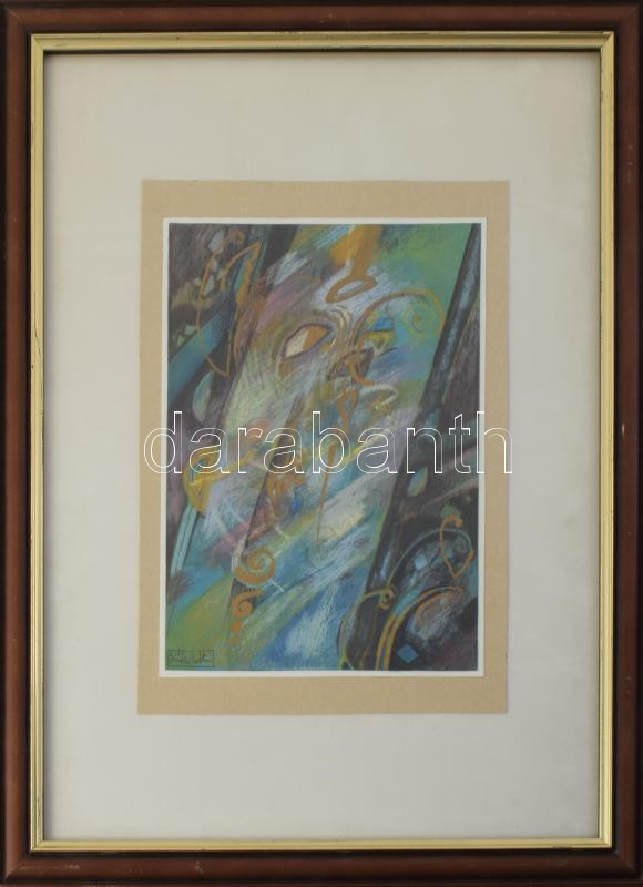 Beschreibung: Olvashatatlan jelzéssel: Gesztusok. Vegyes technika, papír, üvegezett fakeretben, 22x16 cm.