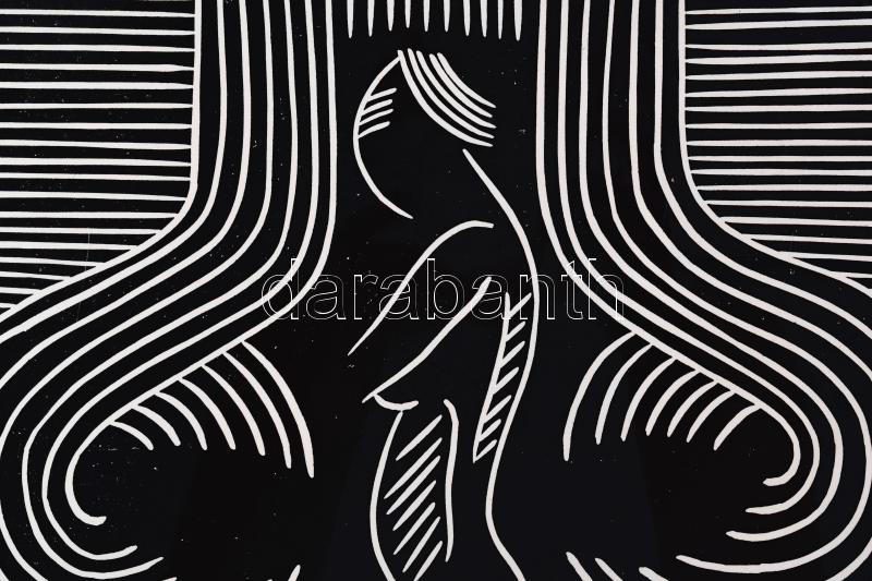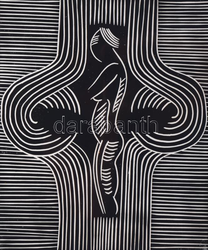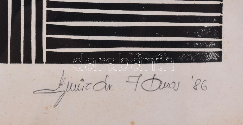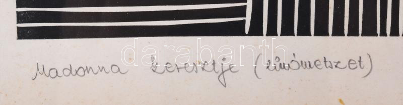 Olvashatatlan jelzéssel (...János), működött a XX. sz. második felében: Madonna keresztje, 1986. Linómetszet, papír, üvegezett fakeretben, 33×27,5 cm