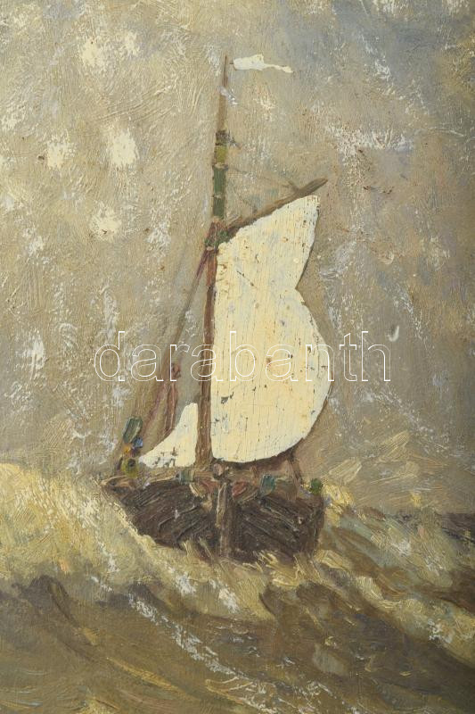 Beschreibung: Olvashatatlan jelzéssel: Vitorlás. Olaj, fatábla, kissé sérült. 26,5x21 cm