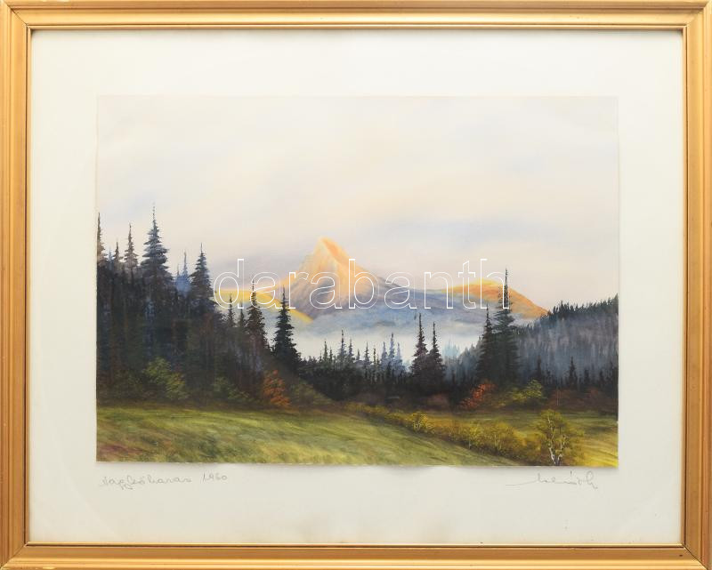 Olvashatatlan jelzéssel, feltehetően erdélyi magyar festő: Nagykőhavas, Erdély, 1960. Gouache, papír. Dekoratív, üvegezett fakeretben. 34x49 cm