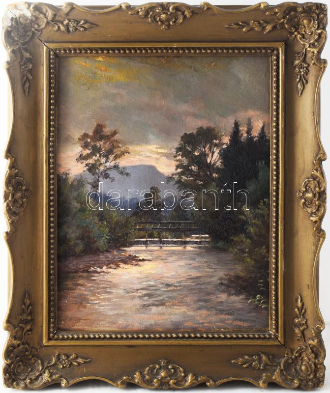 Beschreibung: Páris Emil jelzéssel: Hangulatos táj, 1928. Olaj, karton. 33×26 cm. Dekoratív fakeretben.
