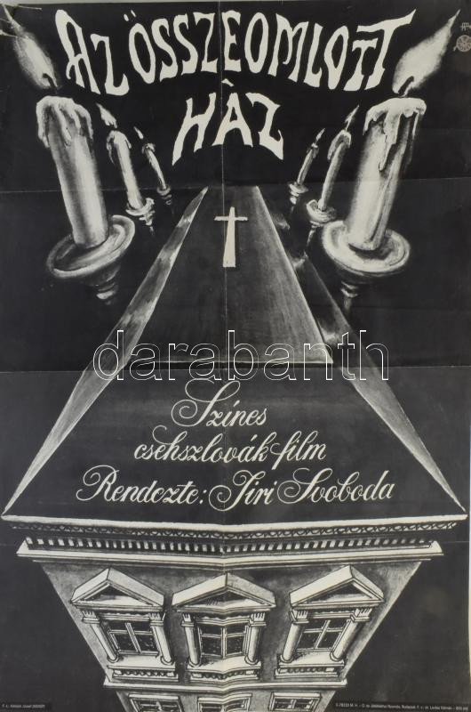 1978 Az összeomlott ház, csehszlovák filmplakát, rendezte: Jirí Svoboda, ofszet, papír, O. és Játékkártyanyomda, bal felső sarkában sérült, hajtásnyomokkal, 80x56,5 cm
