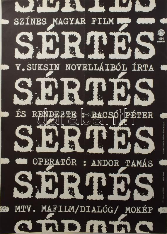 1983 Gyárfás Gábor (1946- ): Sértés. Magyar játékfilm. Filmplakát, haj... https://www.darabanth.com/de/509-Fernauktion/509.0/Gemalde-und-Grafiken/Plakat~3/1983-Gyarfas-Gabor-1946-Sertes-Magyar-jatekfilm-Filmplakat-hajtott-56x40-cm~II3414437