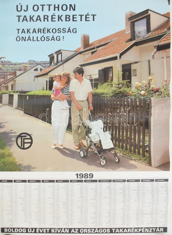 1989 Új otthon takarékbetét, OTP naptár-plakát, feltekerve, kissé hull... https://www.darabanth.com/de/509-Fernauktion/509.0/Gemalde-und-Grafiken/Plakat~3/1989-Uj-otthon-takarekbetet-OTP-naptar-plakat-feltekerve-kisse-hullamos-67-5x48-cm~II3255631