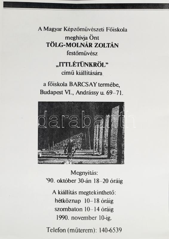 1990 Tölg-Molnár Zoltán, "Ittlétünkről", Képzőművészeti Főis... https://www.darabanth.com/de/509-Fernauktion/509.0/Gemalde-und-Grafiken/Plakat~3/1990-Tolg-Molnar-Zoltan-Ittletunkrol-Kepzomuveszeti-Foiskola-Barcsay-terem-kialli~II3400319