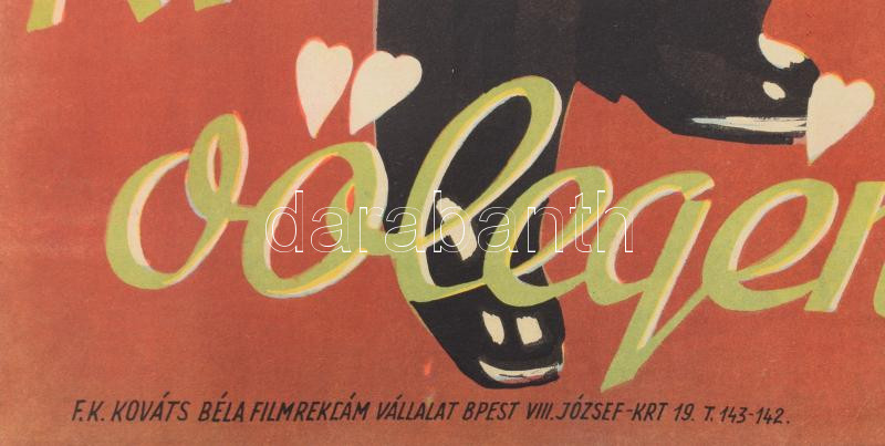 Afrikai vőlegény, 1944. Moziplakát (filmplakát, rácsplakát). Latabár Kálmán, Vaszary Piri, Hidvéghy Valéria és mások szereplésével. Rendezte: Balogh István. Litográfia, papír. Bódis jelzéssel a plakáton. Kellner Márkus Nyomda, Bp. Erdélyi - Kárpát Film. Kováts Béla Filmreklám. Lapszéli apró szakadásokkal, máskülönben jó állapotban. 84×28,5 cm. / Vintage Hungarian poster of a movie, with small tears on the edges, otherwise in good condition, lithograph on paper.