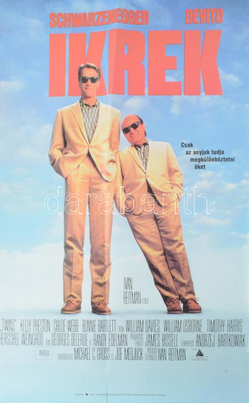 Ikrek, Schwarzenegger, DeVito, filmplakát, ofszet, papír, Sylvester János Nyomda, hajtásnyomokkal, lapszéli szakadásokkal, 83,5x58,5 cm