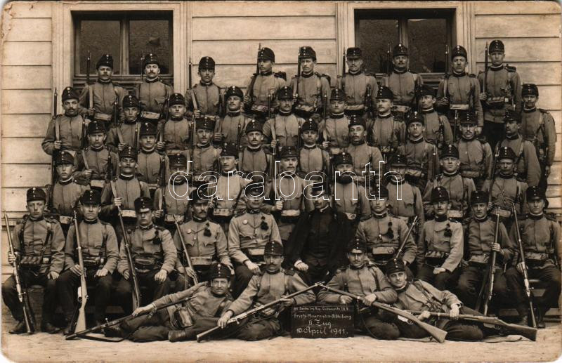 1911 K. k. Landsturminfanterieregiment Leitmeritz No. 9. Ersatz-Reservisten-Abteilung II. Zug / Austro-Hungarian K.u.k. military, soldiers group picture. photo (EM)