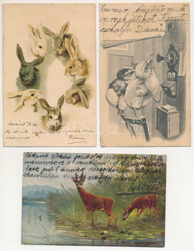 Beschreibung: 3 db RÉGI állatos képeslap, közte 1 litho / 3 pre-1945 animal postcards, with 1 litho