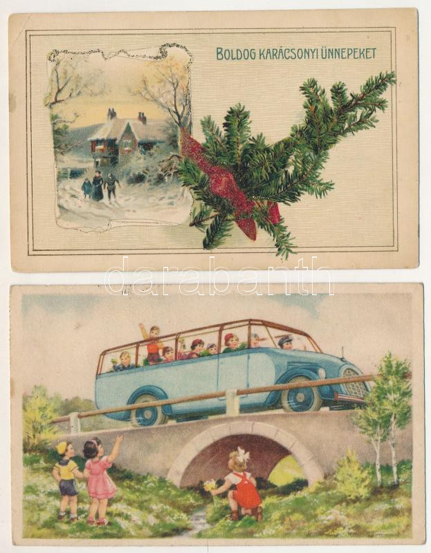 Beschreibung: 44 RÉGI és MODERN karácsonyi üdvözlőlap, közte 1 autóbuszos / 44 pre-1945 and modern Christmas greeting art postcards + 1 autobus