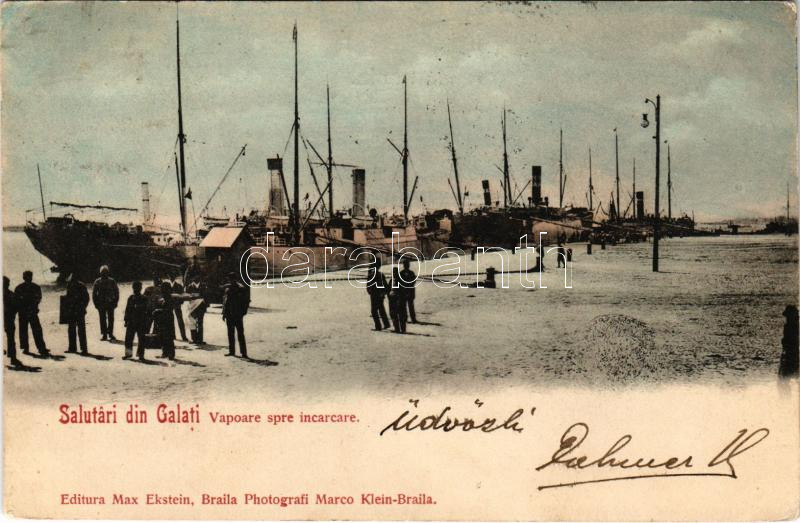 1900 Galati, Galatz; Vapoare spre incarcare. Max Ekstein / port, ships... https://www.darabanth.com/de/510-Fernauktion/510.0/Ansichtskarten/Rumanien~541/1900-Galati-Galatz-Vapoare-spre-incarcare-Max-Ekstein-port-ships-for-loading-Rb~II3446473