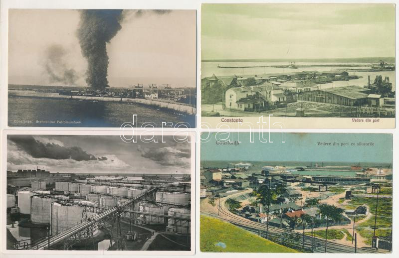 Beschreibung: Constanta, Constantza, Konstanca; 4 pre-1945 town postcards: port, factory