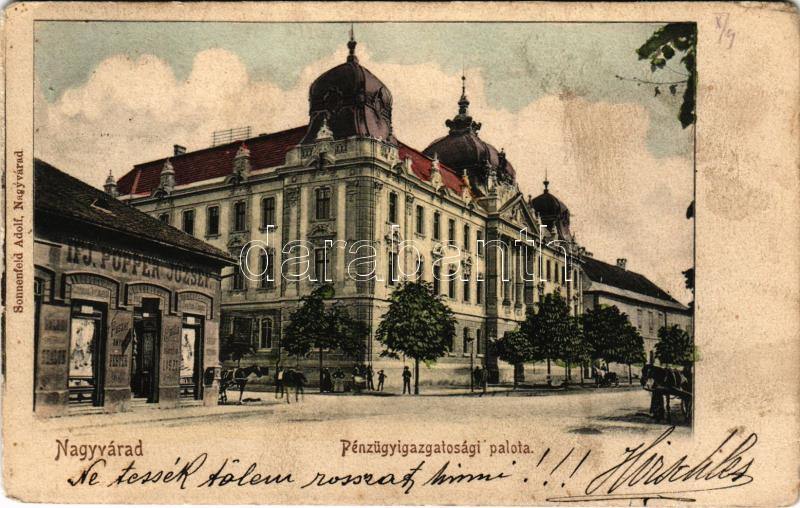 Beschreibung: 1900 Nagyvárad, Oradea; Pénzügyigazgatósági palota, ifj. Ppper József üzlete. Sonnenfeld Adolf kiadása/ financial palace, shop (fl)