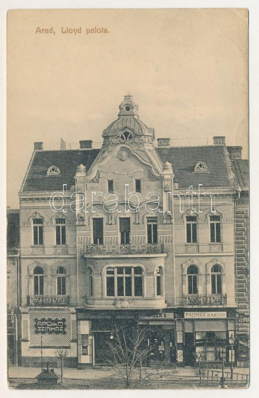 1921 Arad, Lloyd palota, Pálinka raktár, Apolló Színház, Malek D. üzle... https://www.darabanth.com/de/510-Fernauktion/510.0/Ansichtskarten/Siebenburgen~495/1921-Arad-Lloyd-palota-Palinka-raktar-Apollo-Szinhaz-Malek-D-uzlete-Bloch-H-kiadasa-~II3451912
