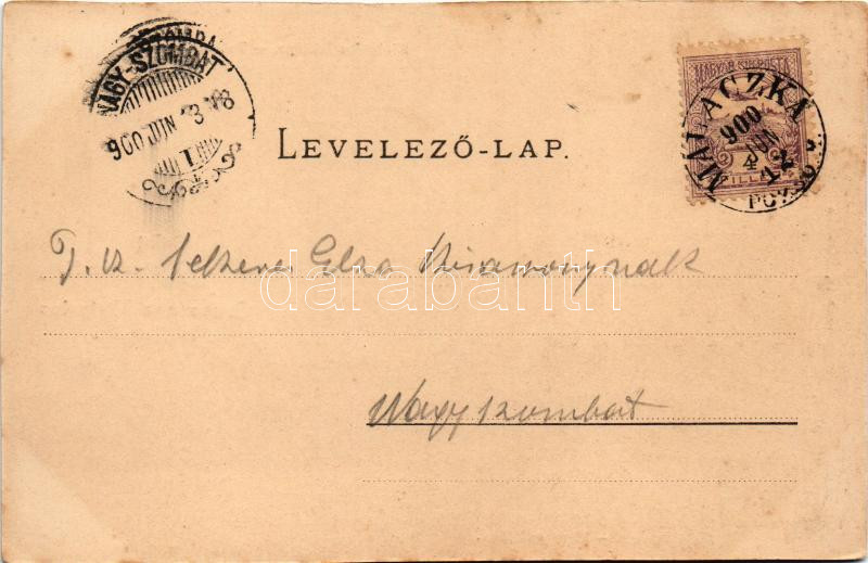 Beschreibung: 1900 Egyházhely, Kiripolcz, Kostoliste; látkép, cigány tanya. Wiesner kiadása / panorama view with gypsy ranch. floral (vágott / cut)