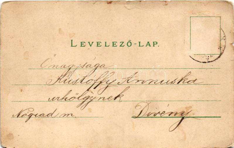 Beschreibung: Dobsina, Dobschau; Kossuth tér, Jégbarlang, látkép. Arthur Köhler No. 1969. / Kossuth Platz, Eishöhle / square, ice cave, genearl view. Art Nouveau, floral, litho (szakadások / tears)