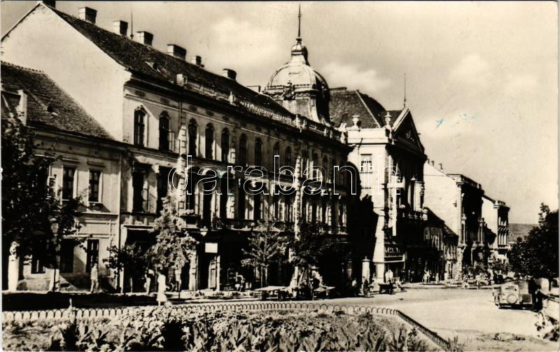 Beschreibung: 1958 Nagykanizsa, Deák tér, üzletek, automobil. Képzőművészeti Alap