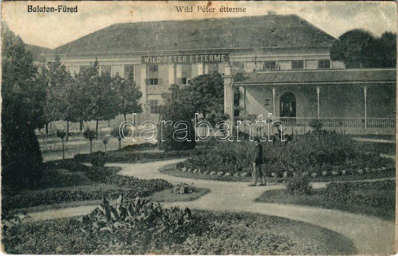 Balatonfüred, Wild Péter étterme. M.T. és F.I. Koch Willy kiadása (EB) https://www.darabanth.com/de/510-Fernauktion/510.0/Ansichtskarten/Ungarn~494/Balatonfured-Wild-Peter-etterme-MT-es-FI-Koch-Willy-kiadasa-EB~II3446216