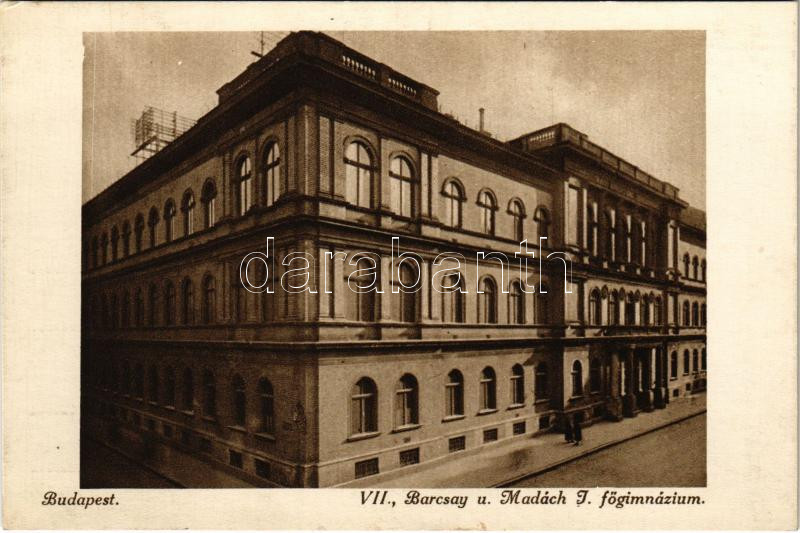 Budapest VII. Barcsay utca, Madách Imre főgimnázium https://www.darabanth.com/de/510-Fernauktion/510.0/Ansichtskarten/Ungarn~494/Budapest-VII-Barcsay-utca-Madach-Imre-fogimnazium~II2844502