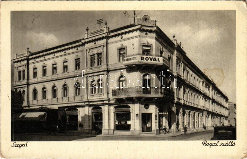 Szeged, Grand Hotel Royal szálloda, kávéház és étterem, automobil (Rb) https://www.darabanth.com/de/510-Fernauktion/510.0/Ansichtskarten/Ungarn~494/Szeged-Grand-Hotel-Royal-szalloda-kavehaz-es-etterem-automobil-Rb~II3430474