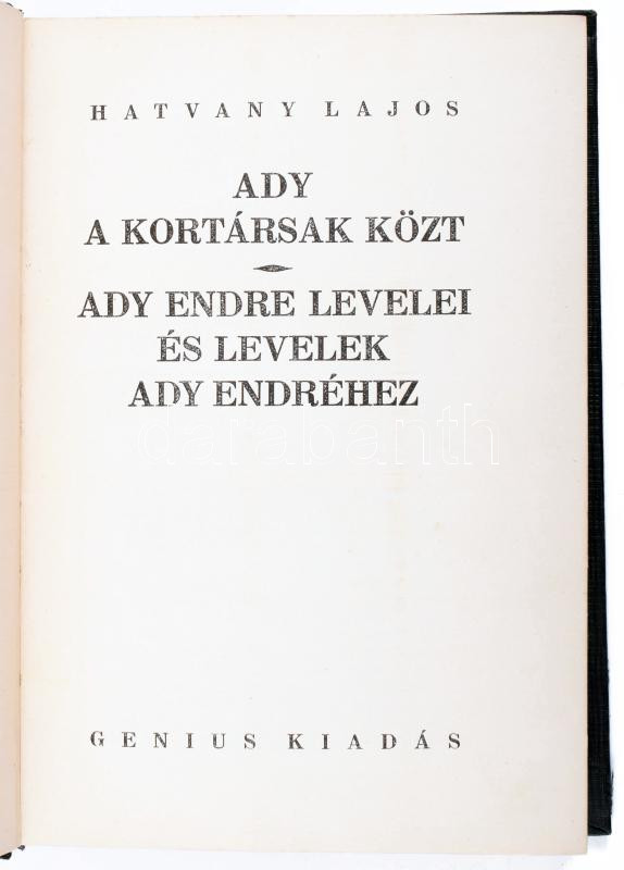 4 db könyv: Ady Endre élete és munkái. Biobibliografiai tanulmány. Összeáll.: Gulyás Pál. (1925); Hatvany Lajos: Ady a kortársak közt. Ady Endre levelei és levelek Ady Endréhez. (1928); Lajtor László: Az igazi Ady. (1934); Új Antologia. (1940). Változó állapotban.