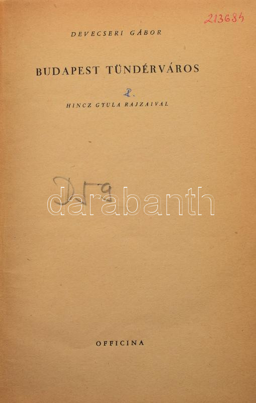 Devecseri Gábor: Budapest tündérváros. Hincz Gyula rajzaival. Bp., 194... https://www.darabanth.com/de/510-Fernauktion/510.0/Bucher/Bucher-Andere-kuriositaten~785/Devecseri-Gabor-Budapest-tundervaros-Hincz-Gyula-rajzaival-Bp-1946-Officina-119plus1-p-1-k~II3433992