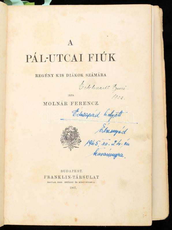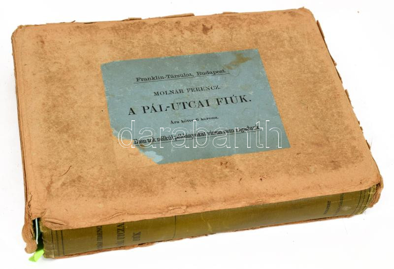 Molnár Ferenc: A Pál utcai fiúk. Bp., 1907, Franklin, 242 p. + 7 t. Első kiadás! Kiadói egészvászon kötés, kiadói kartontokban, kopott borítóval és tokkal, laza fűzéssel, kijáró lapokkal, egy tábla hiánnyal, foltos lapokkal.