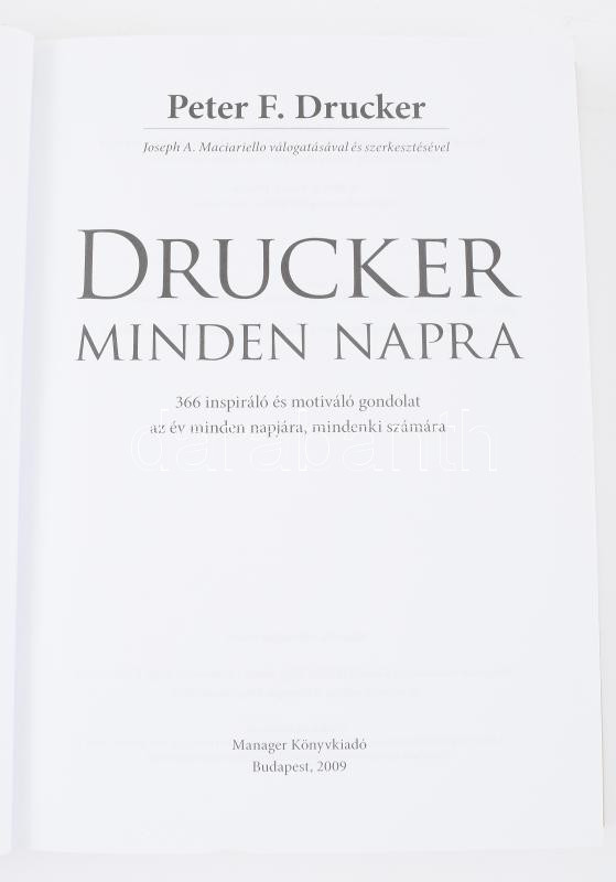 Peter F. Drucker: Drucker minden napra. 366 inspiráló és motíváló gondolat az év minden napjára, mindenki számára. Bp., 2009, Manager Könyvkiadó. Kiadói kartonált papírkötés.