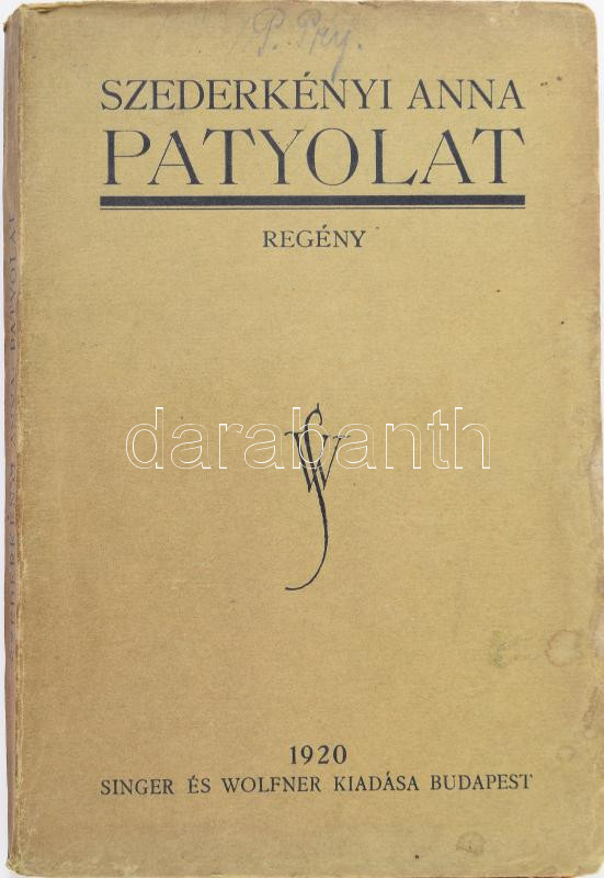 Szederkényi Anna: Patyolat. Regény. Bp., 1920, Singer és Wolfner, 112 ... https://www.darabanth.com/de/510-Fernauktion/510.0/Bucher/Bucher-Andere-kuriositaten~785/Szederkenyi-Anna-Patyolat-Regeny-Bp-1920-Singer-es-Wolfner-112-p-1-kiadas-Kiadoi-papC3~II3400143