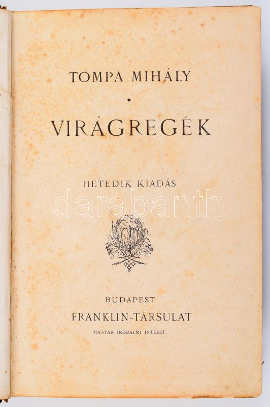 Tompa Mihály: Virágregék. Bp., [1888], Franklin-Társulat, 1 (címkép) t... https://www.darabanth.com/de/510-Fernauktion/510.0/Bucher/Bucher-Andere-kuriositaten~785/Tompa-Mihaly-Viragregek-Bp-1888-Franklin-Tarsulat-1-cimkep-tplus-294-p-Kiadoi-egesz~II3418040