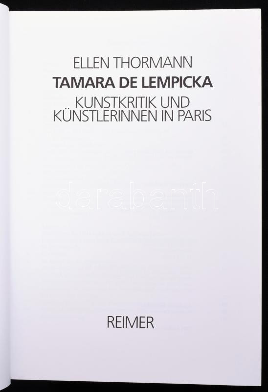 Ellen Thormann: Tamara de Lempicka. Kunstkritik und Künstlerinnen in Paris. Berlin, 1993, Dietrich Reimer Verlag. Német nyelven. Képanyaggal illusztrált. Kiadói papírkötés.