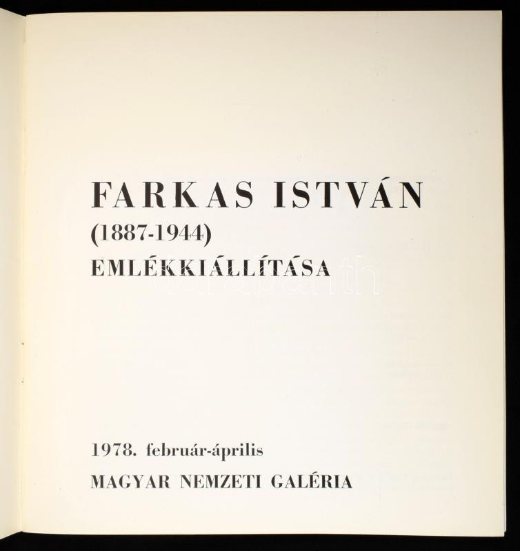 Farkas István (1887-1944) emlékkiállítása. Magyar Nemzeti Galéria, 1978. február-április. (Bp., 1978, Népművelési Propaganda Iroda-ny.) Fekete-fehér reprodukciókkal illusztrálva. Kiadói tűzött papírkötés.