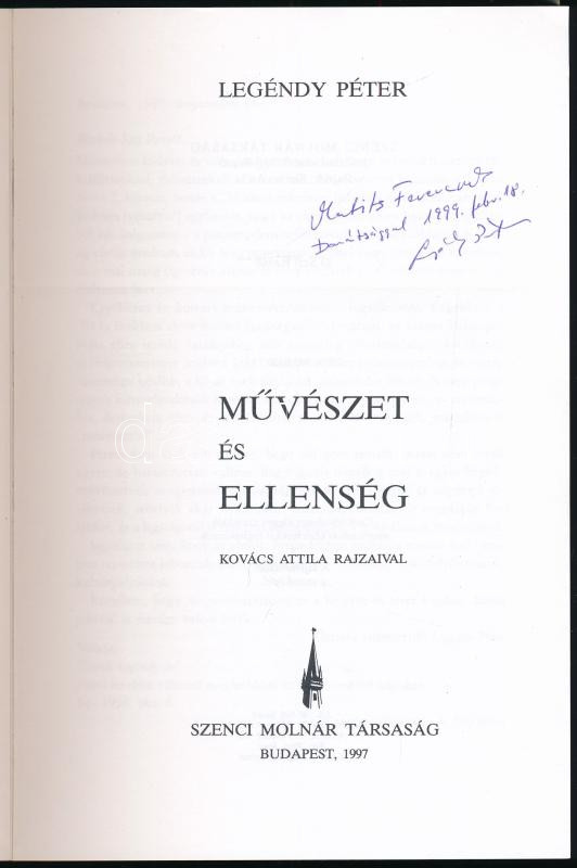 Művészet és ellenség. Szerk.: Legéndy Péter. Kovács Attila rajzaival. Szenci Molnár Társaság: Budapest, 1997. 123p. Kiadói papírkötésben. Matits Ferenc művészettörténész számára DEDIKÁLT.