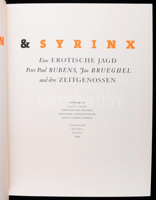 Beschreibung: Pan & Syrinx. Eine Erotische Jagd. Peter Paul Rubens, Jan Brueghel und ihre Zeitgenosssen. Kassel, 2004, Saatliche Museen Kassel, 192 p. Német nyelven. Gazdag képanyaggal illusztrált. Kiadói papÃrkötés.
