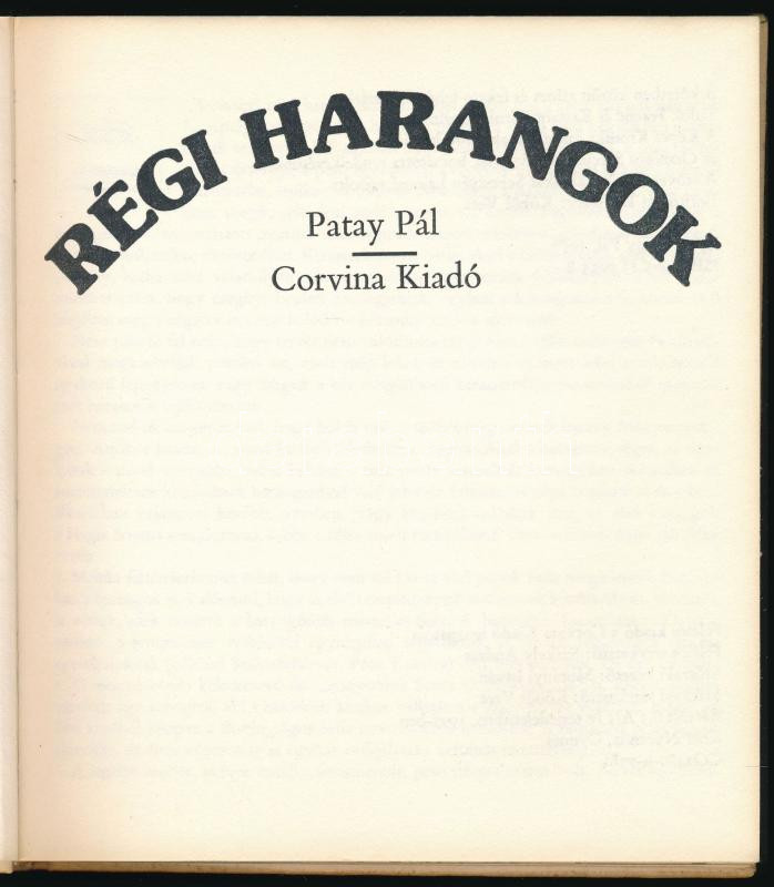Patay Pál: Régi harangok. Bp., 1977, Corvina. Fekete-fehér fotókkal il... https://www.darabanth.com/de/510-Fernauktion/510.0/Bucher/Bucher-Architektur-Kunst~771/Patay-Pal-Regi-harangok-Bp-1977-Corvina-Fekete-feher-fotokkal-illusztralt-Kiadoi-egesz~II3453796