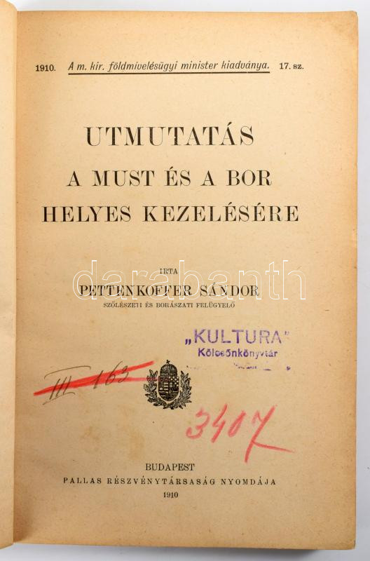 Pettenkoffer Sándor: Utmutatás a must és a bor helyes kezelésére. Bp.,... https://www.darabanth.com/de/510-Fernauktion/510.0/Bucher/Bucher-Gastronomie-und-Gartnerei~772/Pettenkoffer-Sandor-Utmutatas-a-must-es-a-bor-helyes-kezelesere-Bp-1910-Pallas-263-p-Kora~II3450192