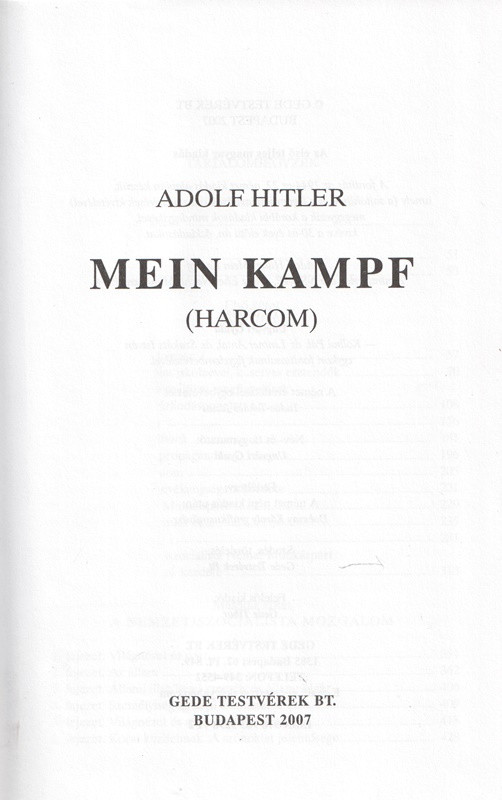Mein Kampf. Harcom. Fordította Ungvári Gyula.