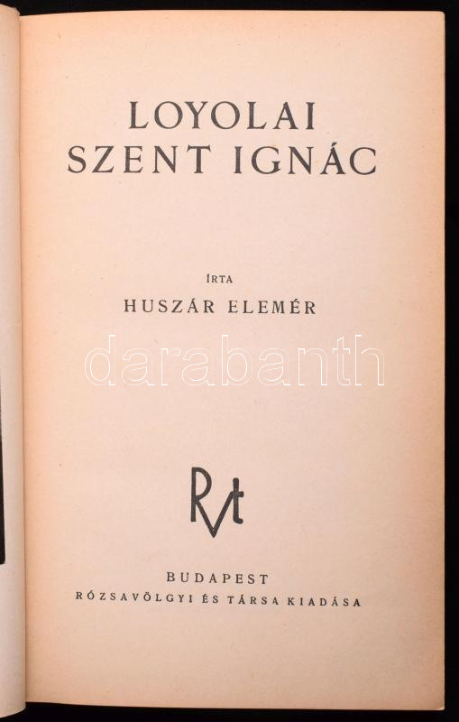 Huszár Elemér: Loyolai Szent Ignác. Bp.,1940,Rózsavölgyi és Társa. Kia... https://www.darabanth.com/de/510-Fernauktion/510.0/Bucher/Bucher-Geschichte~769/Huszar-Elemer-Loyolai-Szent-Ignac-Bp-1940-Rozsavolgyi-es-Tarsa-Kiadoi-egeszvaszon-kot~II3444149