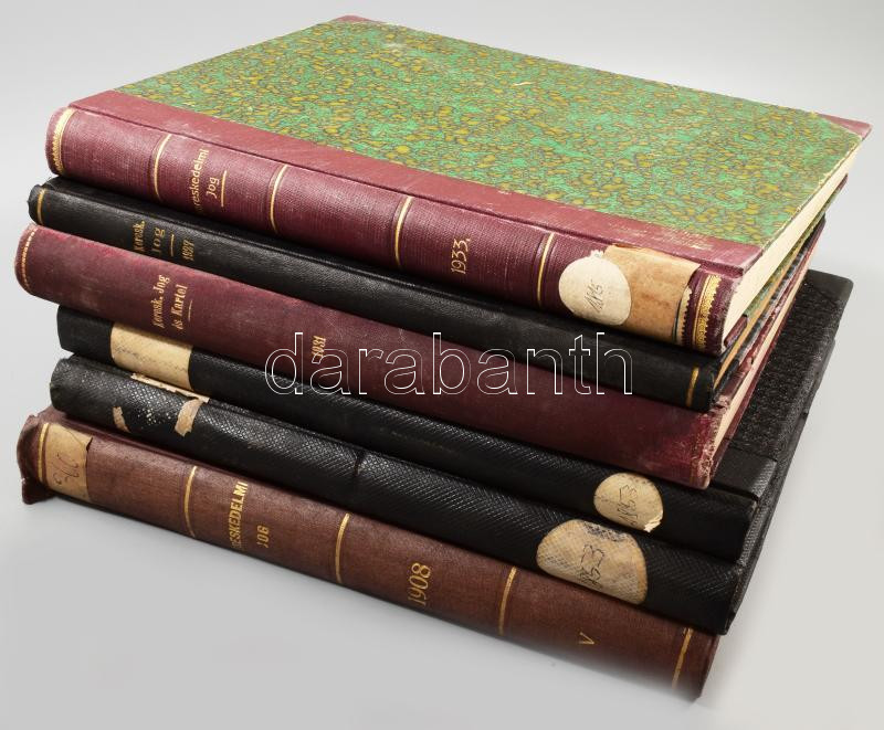 Beschreibung: Kereskedelmi jogi folyóirat tétel: A Kereskedelmi jog c. folyóirat 1908-1938 közötti évfolyamok közül 6 teljes évfolyam bekötve