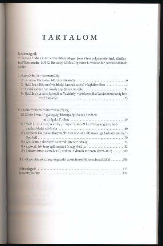 A Hódmezővásárhelyi Honvéd Helyőrség története. Szerk.: Lőrinczné Kis Ibolya. Hódmezővásárhely, 2001, MH 62. Bercsényi Miklós Gépesített Lövészdandár, 120 p. Kiadói papírkötés.