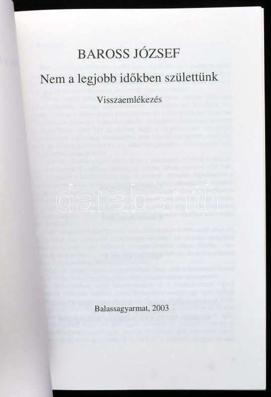 Baross József: Nem a legjobb időkben születtünk. Visszaemlékezés. Balassagyarmat, 2003., Szerzői, 200 p. Kiadói papírkötés.