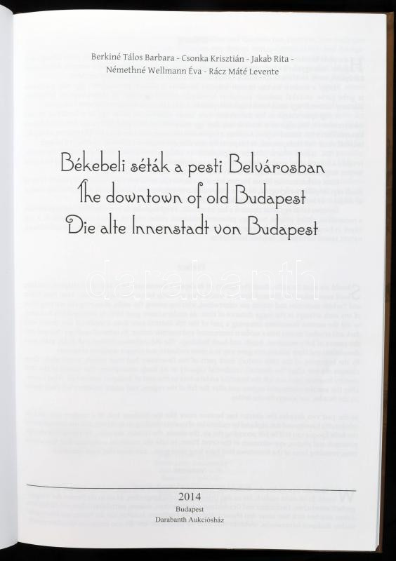 Berkiné-Csonka-Jakab-Némethné-Rácz: Békebeli séták a pesti Belvárosban / The downtown of old Budapest. Bp., 2014. Darabanth. Számos képpel és a Belváros történelmi utcanévjegyzékével. Kiadói kartonált papírkötésben Új állapotban.