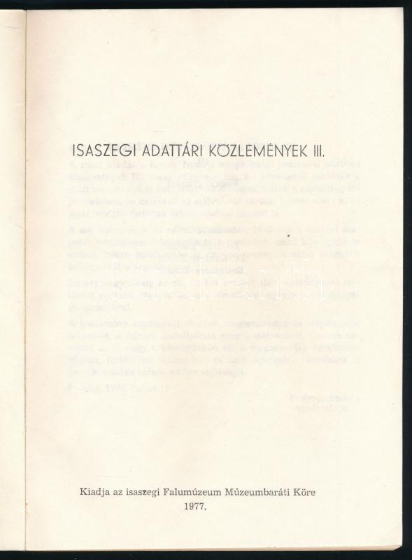 Dürr-Kovássy-Szathmáry: Isaszegi adattári közlemények III. 1977, Isaszegi Falumúzeum Múzeumbaráti Köre. Kiadói papírkötés, jó állapotban