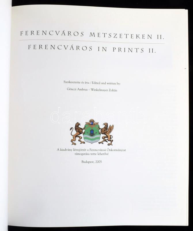 Gönczi Ambrus - Winkelmayer Zoltán: Ferencváros metszeteken. Ferencváros in Prints. I-II. kötet. Bp., 2004 - 2005, Ferencvárosi Önkormányzat, 58+2 p.; 103+1 p. Számos fekete-fehér és színes reprodukcióval illusztrálva. Magyar és angol nyelven. Megjelent 1000 példányban. Kiadói papírkötések, jó állapotban.