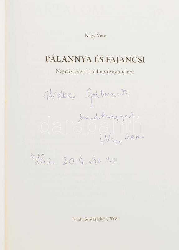 Nagy Vera: Pálannya és Fajancsi. Néprajzi írások Hódmezővásárhelyről. DEDIKÁLT! Hódmezővásárhelyről, 2008, Norma Nyomdász Kft. Kiadói papírkötés.