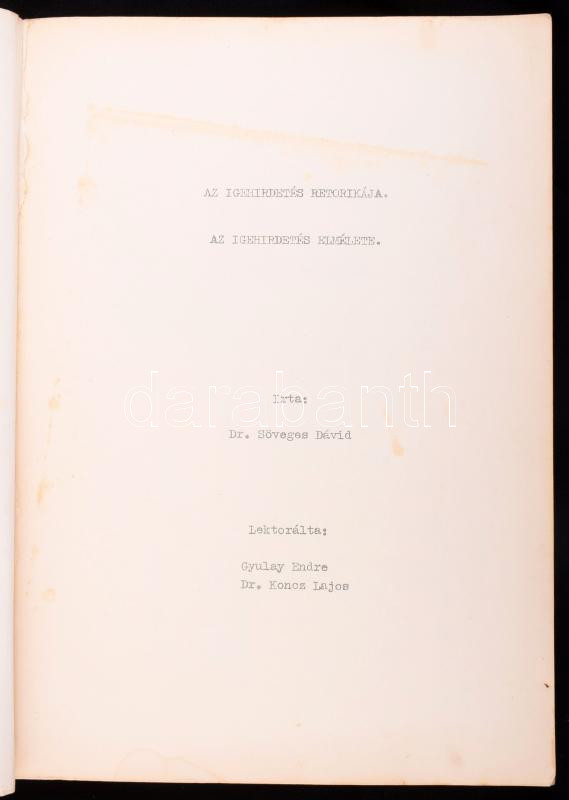 Dr. Söveges Dávid: Az igehirdetés retorikája - Az igehirdetés elmélete... https://www.darabanth.com/de/510-Fernauktion/510.0/Bucher/Bucher-Religion~780/Dr-Soveges-David-Az-igehirdetes-retorikaja-Az-igehirdetes-elmelete-Bp-1979-189p-plus-1-t~II3444182