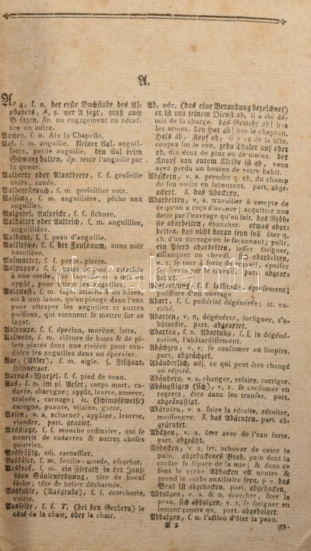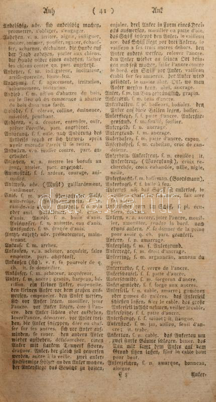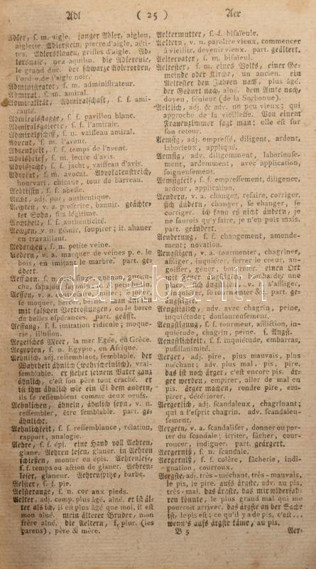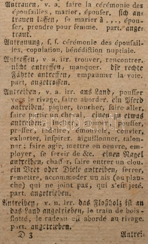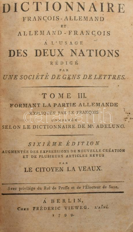 Dictionnaire françois-allemand et allemand-francois, á l'usage des deux nations ... Tome III_ A' Brunsvic 1799: chez Fréderic Vieweg, 1799. - 630p. Korabeli, sérült félbőr kötésben